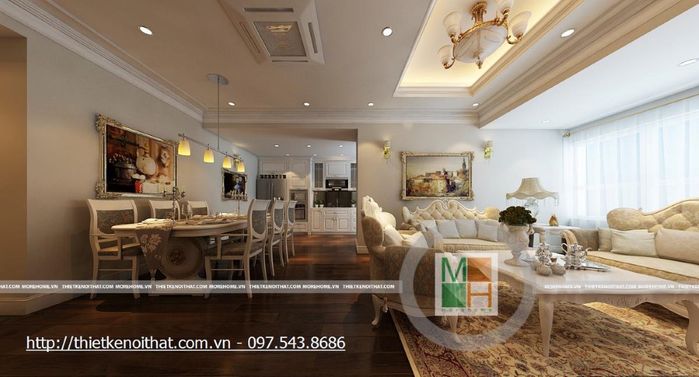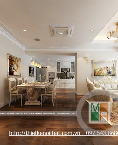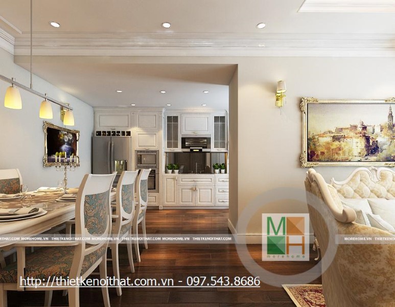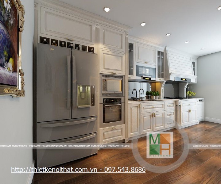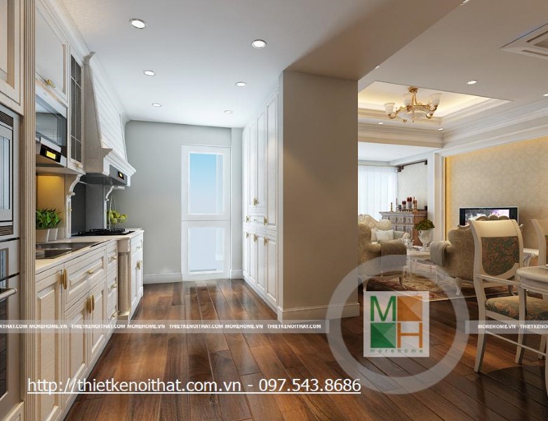 Thiết kế thi công tủ bếp tân cổ điển tại chung cư Mipec