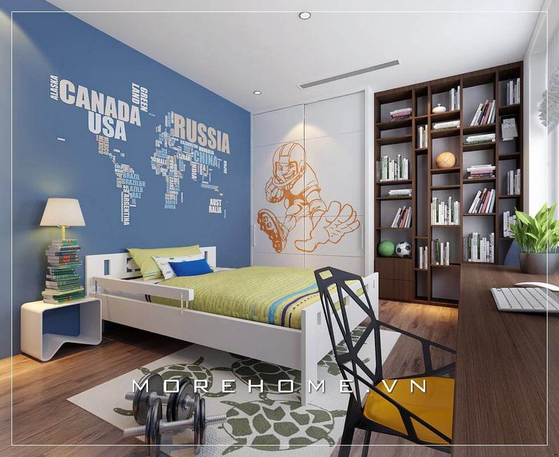 Trong phòng ngủ của bé trai, bạn có thể lựa chọn chất liệu gỗ công nghiệp để làm nội thất, với nhiều màu sắc và kiểu dáng khác nhau, chắc chắn rằng con bạn sẽ rất thích thú.